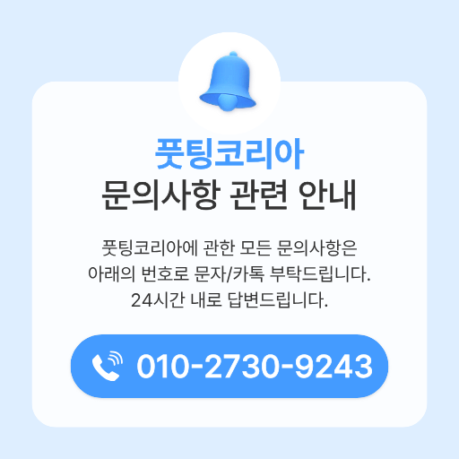 대표번호 : 031-722-3999 팩스번호 : 031-721-4999 개인정보관리책임자 : 이연주 E-mail : footingkorea@naver.com 통신판매업신고번호 : 제2021-성남중원-0361호